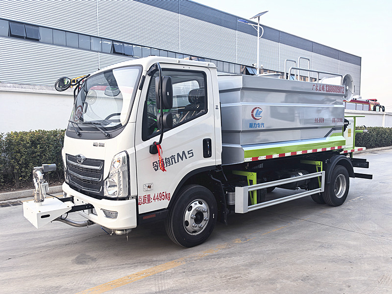 上裝配置:罐體采用國標Q235碳鋼,罐體采用機器壓板一次性成型技術,采用先進旋邊機,方形罐體工藝保證了罐體制作的精度和美觀。罐體實際容積5-7立方,全國獨有烤漆工藝,防腐除銹,多層底漆、面漆噴涂。 功能齊全,配備前沖、后灑、側噴、綠化高炮,采用優質水泵,合理設計水路管道,氣控取力器,作業能力強;采用柴油發電機大功率霧炮機,噴灑距離最高可達30米,運用范圍廣。